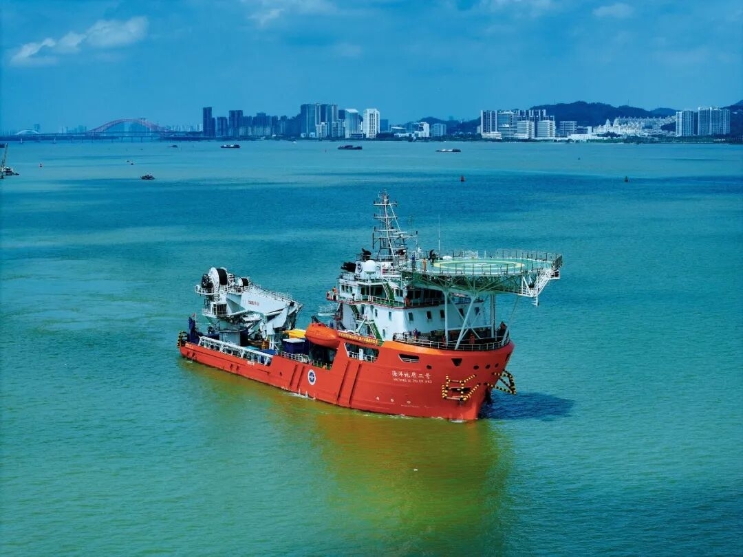 “海洋地质二号”科考船搭载“海马”号深海遥控潜水器在南海北部进行“源火”采集。受访者 供图