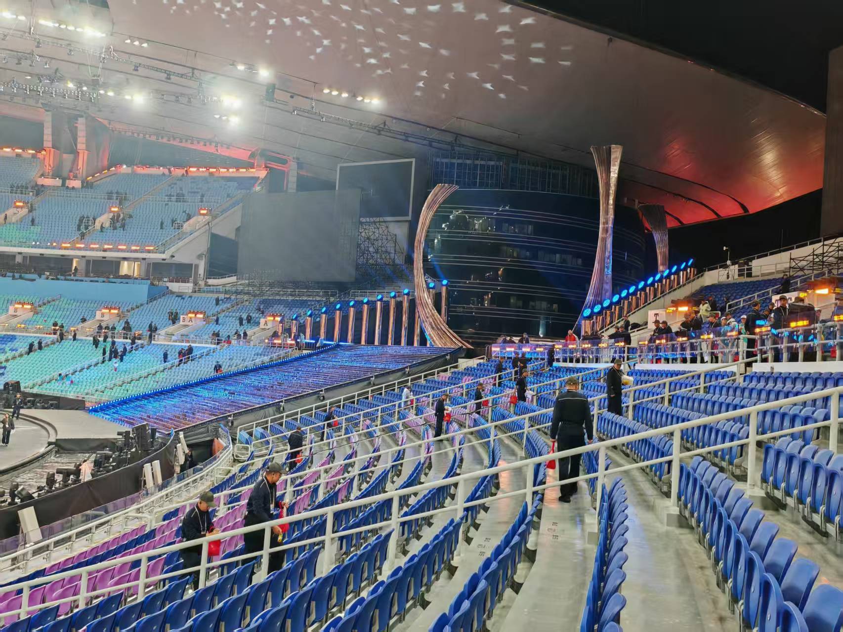 11月4日晚秋雨霏霏,43000多名市民群众观摩彩排,散场后观众席上几乎找不到被遗落的垃圾,奥体中心依然整洁如初。这份秩序与洁净,不仅是文明观赛礼仪的体现,更是广大市民群众践行绿色理念的生动体现。